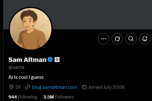 Even OpenAI CEO Sam Altman has got in on the act turning his X profile picture into an animated version of himself.